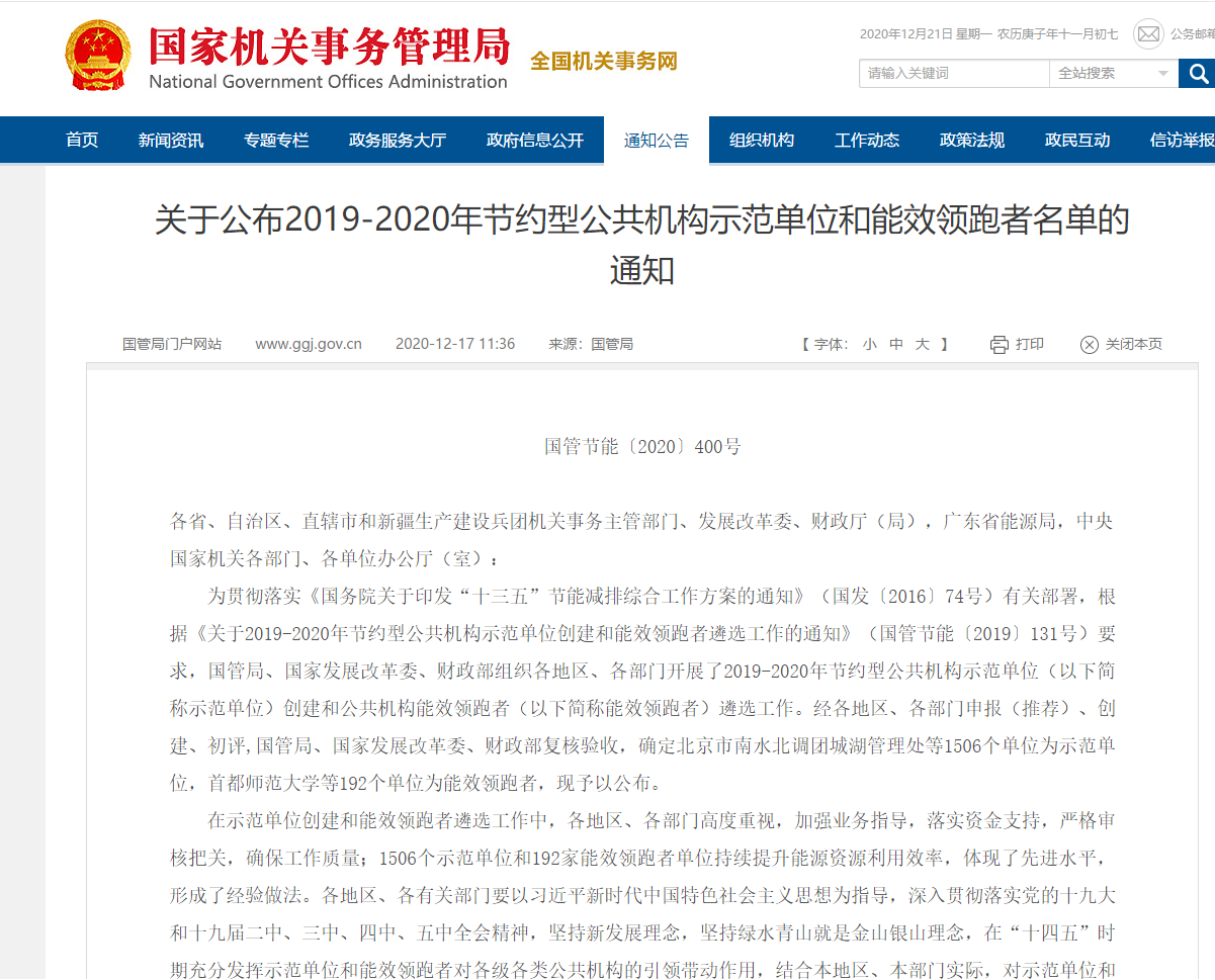 我司服務(wù)的10家單位全部通過國家級節(jié)約型公共機(jī)構(gòu)驗(yàn)收,完成國家級節(jié)約型公共機(jī)構(gòu)建設(shè)。